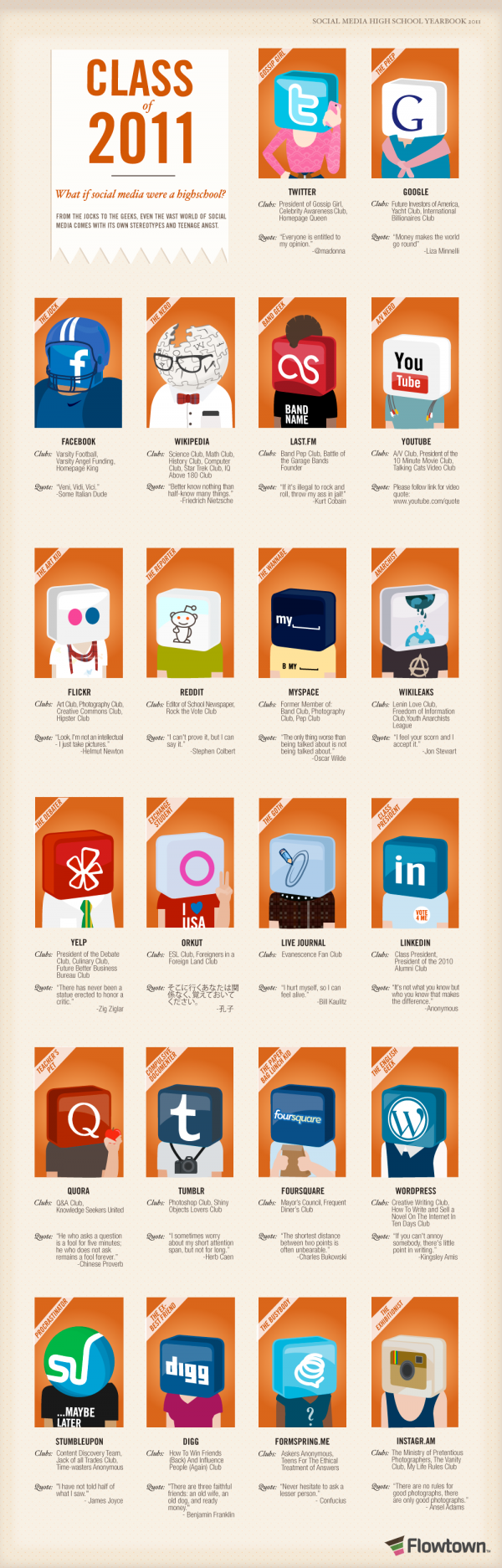 Las infografías que comparte la gente de Flowtown siempre son una muestra de originalidad y creatividad de parte de los diseñadores y creativos de dicha empresa. Esta que se comparte hoy trata sobre el tema, de si las redes sociales fueran estudiantes, ¿cómo serían?, checalo tu mismo: